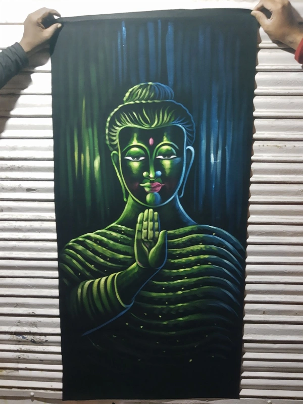 Peaceful Buddha Neon Glowing Painting In Neon Lighting Peace Mood ON